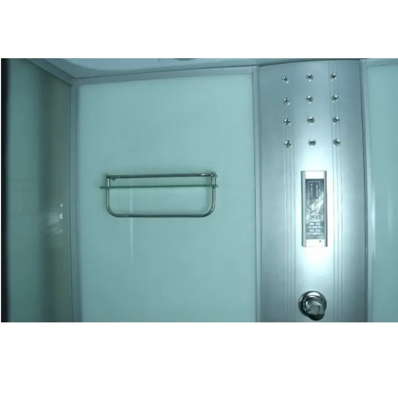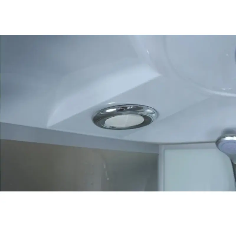 Душевая кабина Водный мир имеет размер 90х90 см. Форма — четверть круга , цвет хром, исполнение полотна двери матовое. Механизм открывания раздвижной.