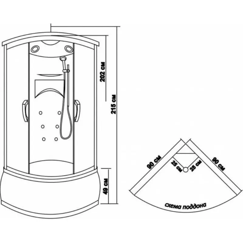 | Габариты | 90 × 90 × 215 см |