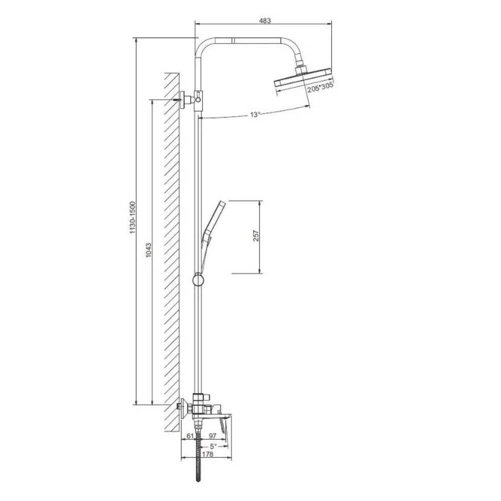 | Диаметр верхнего душа, мм | 305 |