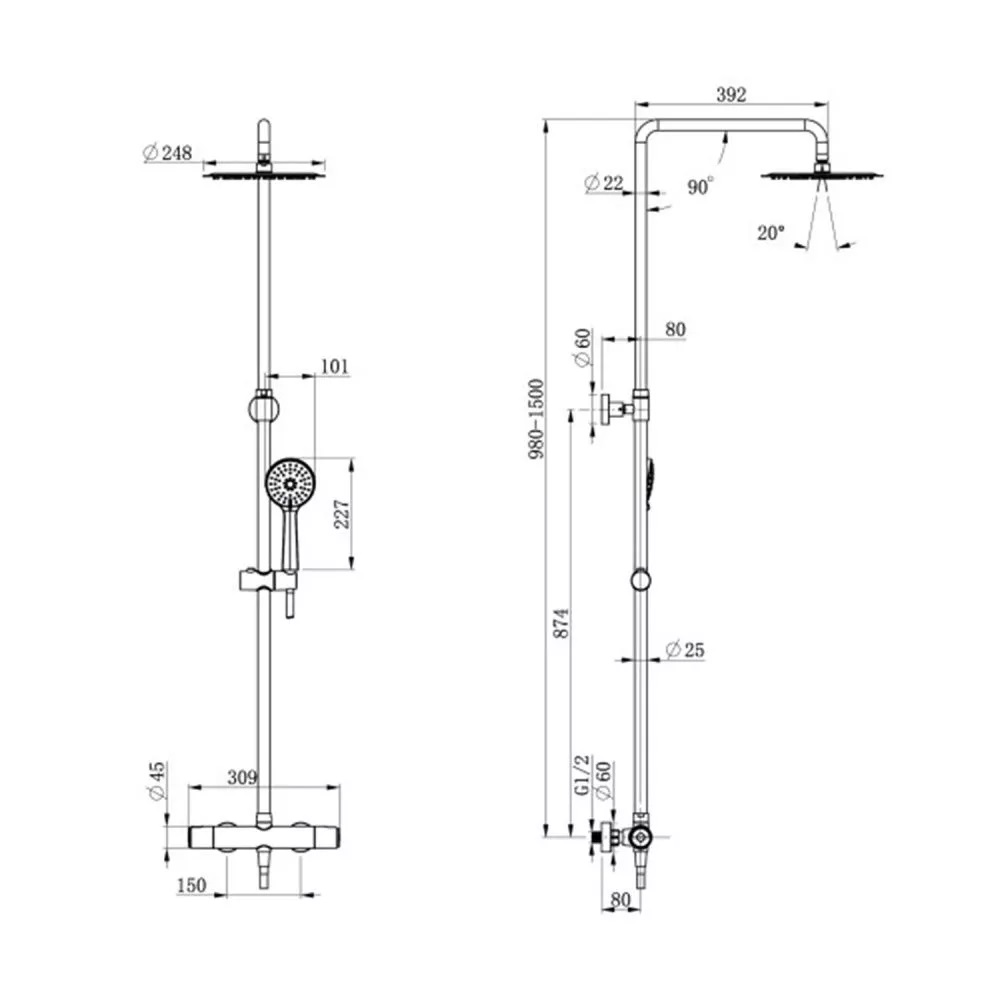 Диаметр верхнего душа, мм