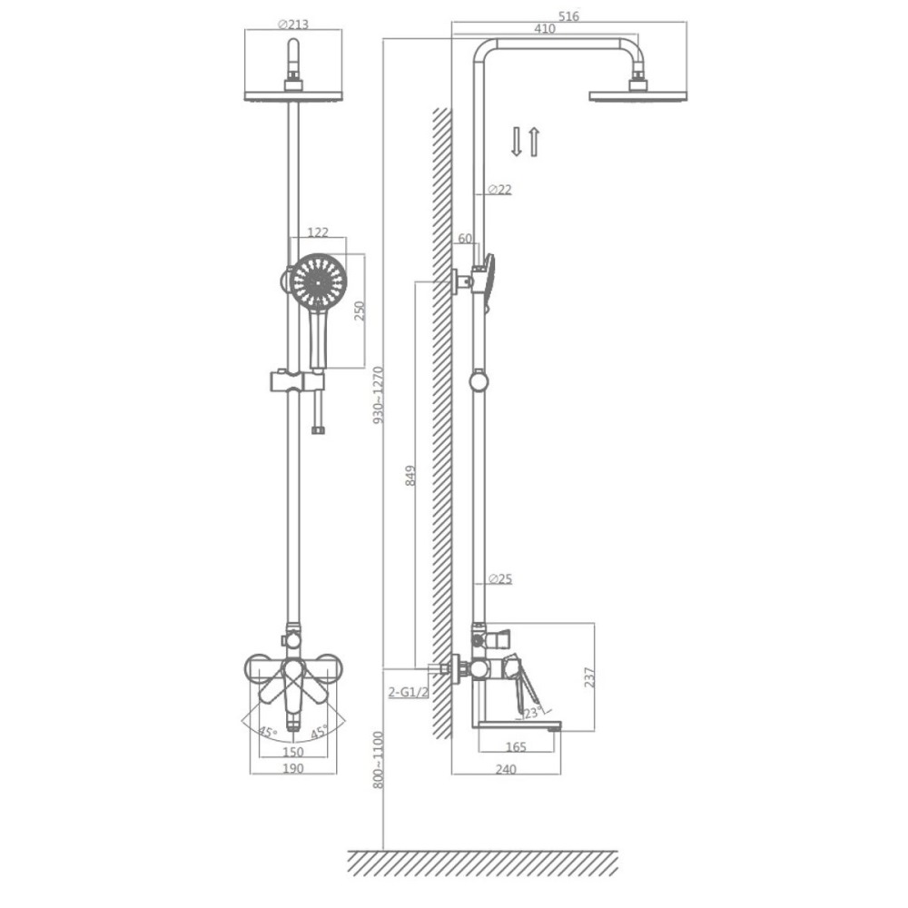 | Диаметр верхнего душа, мм | 213 |