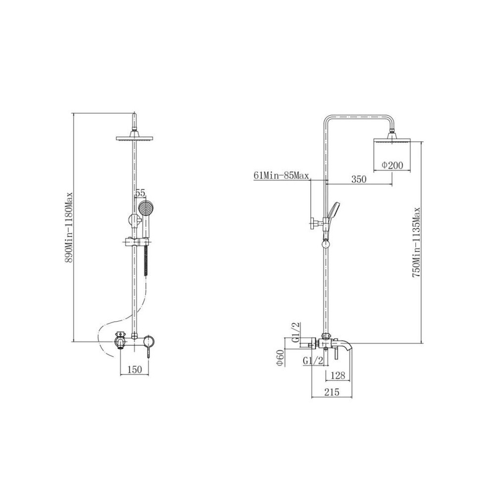 Диаметр верхнего душа, мм