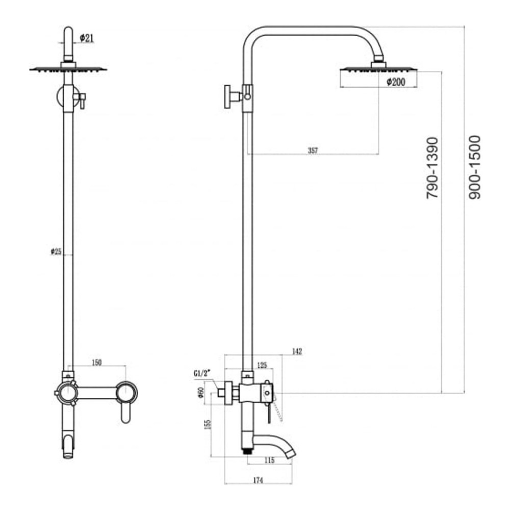 Душевая система Fmark FS83 с изливом Черный матовый FS8345H