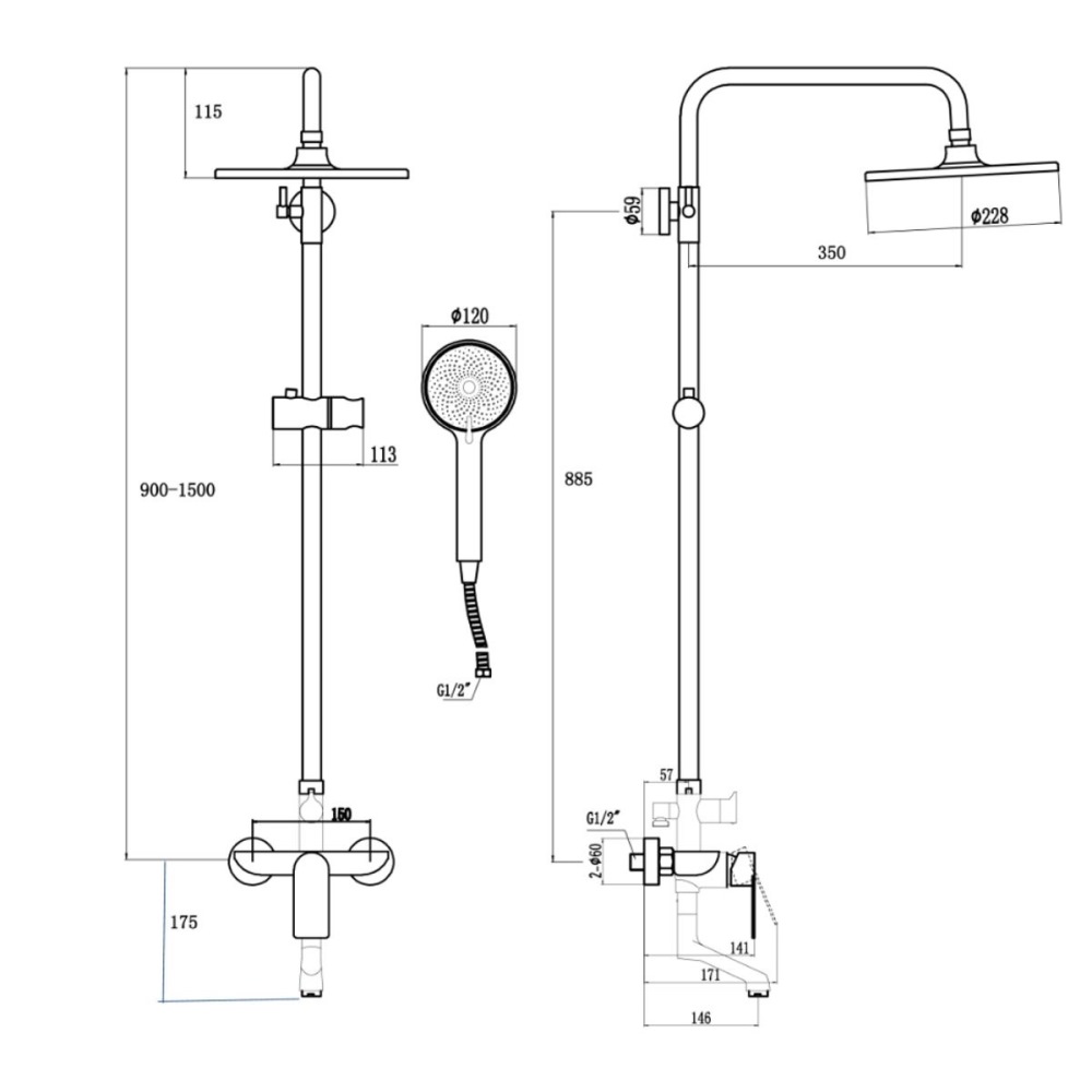 Диаметр верхнего душа, мм