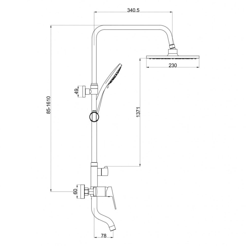 | Диаметр верхнего душа, мм | 230 |