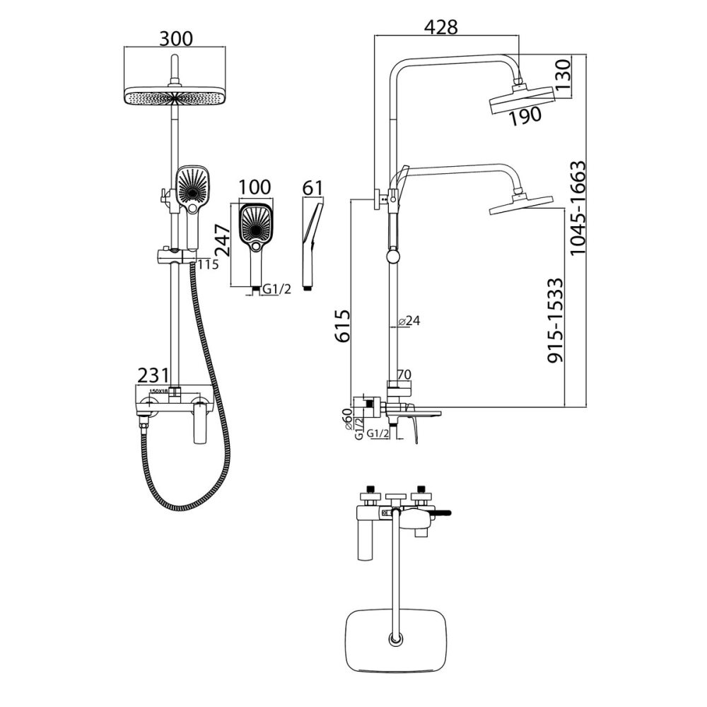 | Диаметр верхнего душа, мм | 300 |