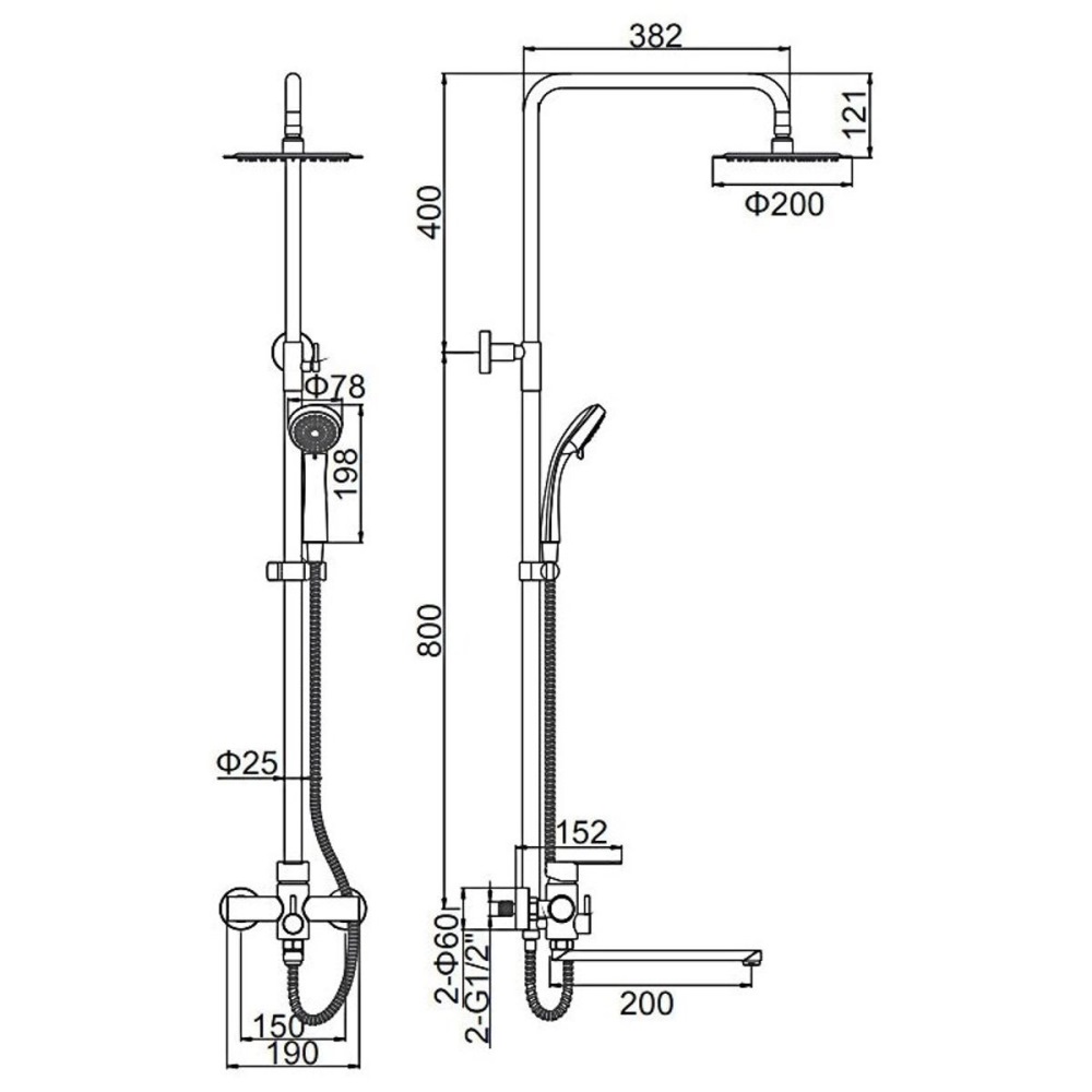 | Диаметр верхнего душа, мм | 200 |