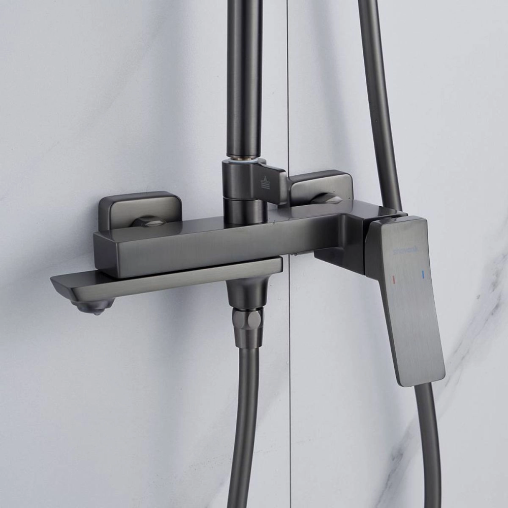 Душевая система Shevanik S44 с изливом Оружейная сталь S4436T