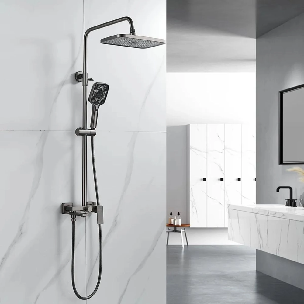 Душевая система Shevanik S96 с изливом Оружейная сталь S9636T