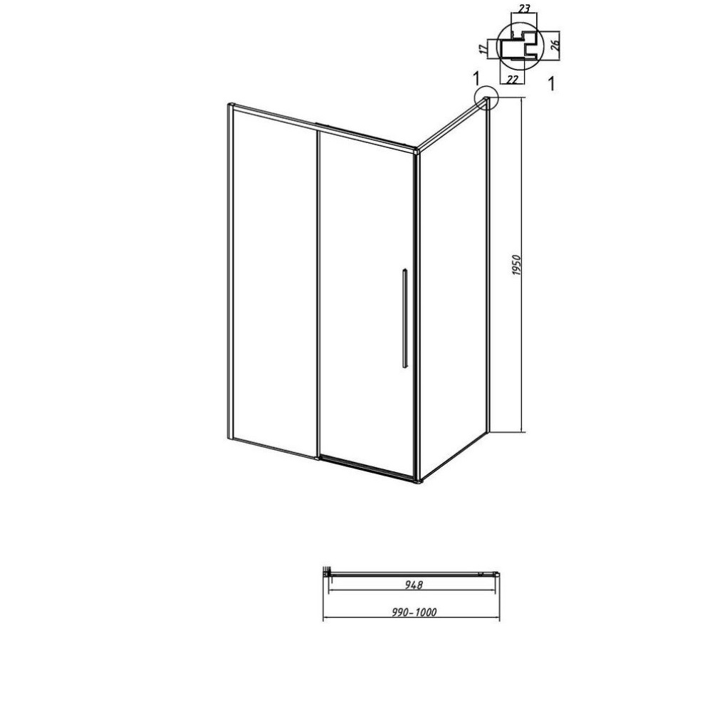 Душевая стенка Grossman Galaxy 100 Черный / Прозрачное 200.K33.01.100.21.00