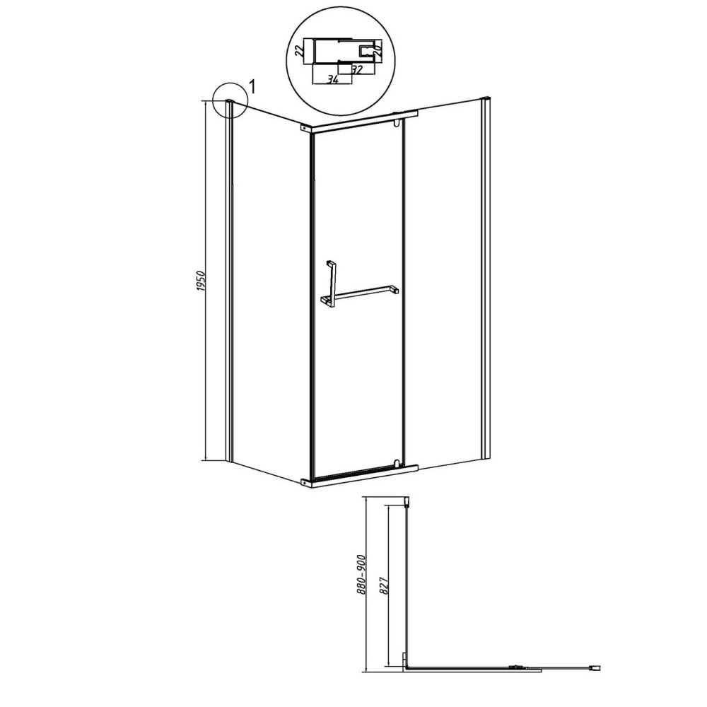 Душевая стенка Grossman Pragma 90 Хром / Прозрачное 200.K33.03.90.10.00