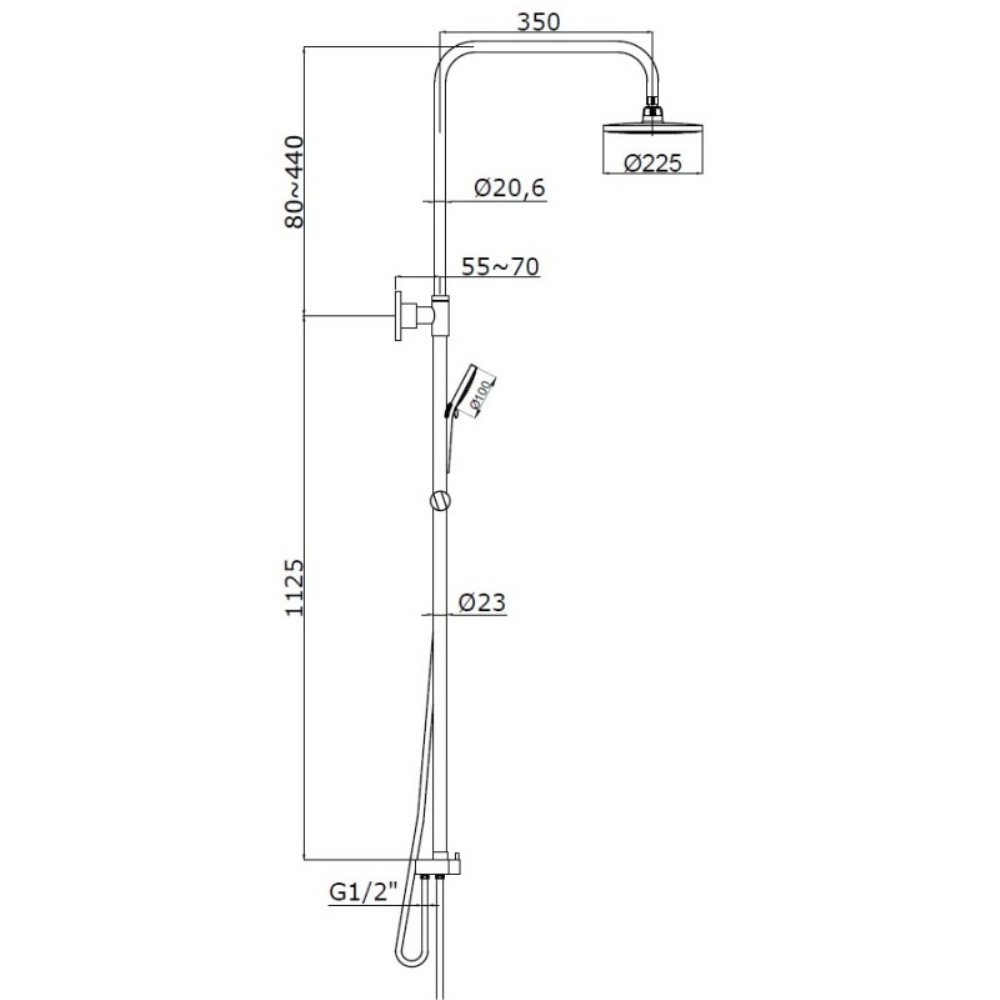 | Диаметр верхнего душа, мм | 225 |