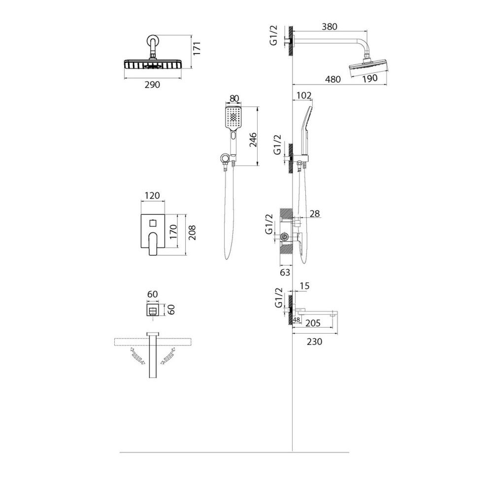 | Тропический (верхний) душ | В комплекте |
