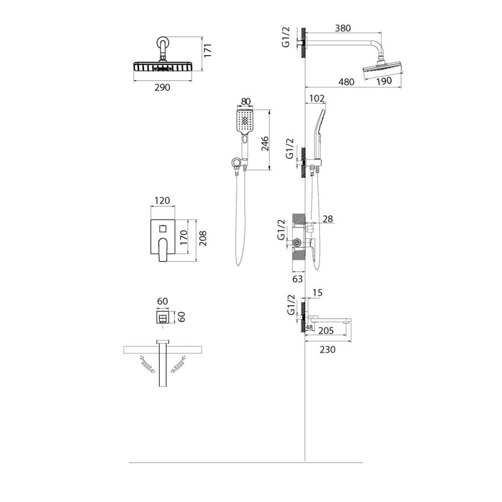 | Тропический (верхний) душ | В комплекте |