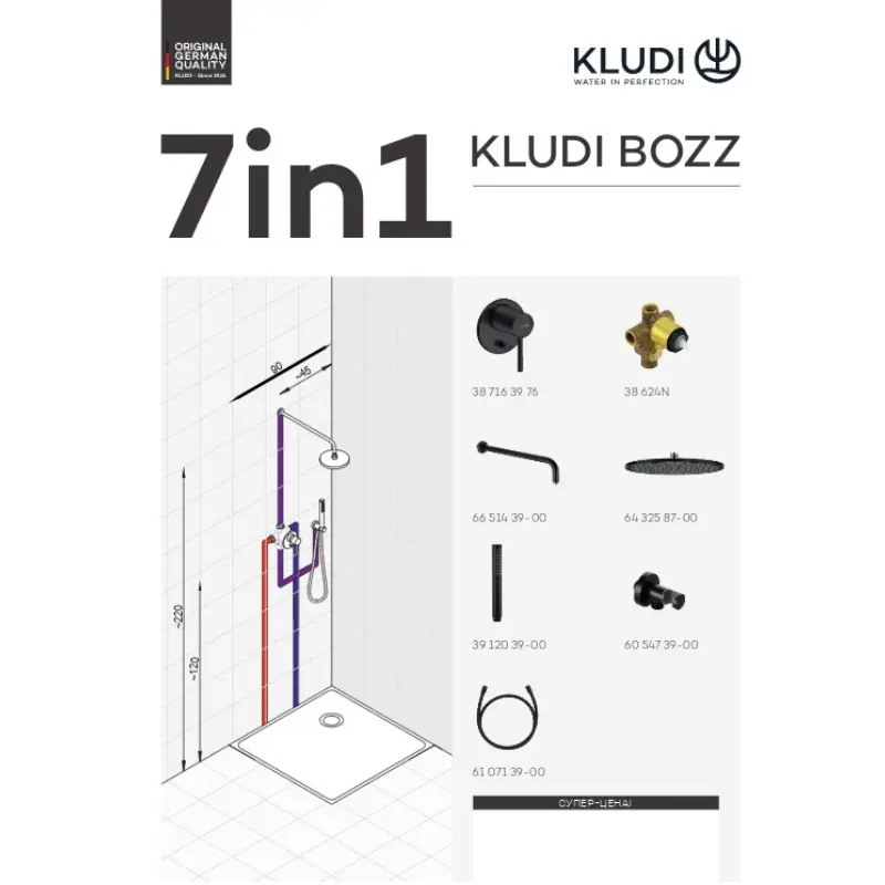 Душевая встройка Kludi Bozz – идеальное дополнение душевой зоны. Система изготовлена из качественных материалов и имеет защитное покрытие, что обеспечивает прочность и надежность изделия. Комплектация: смеситель, лейка ручного и тропического душа.