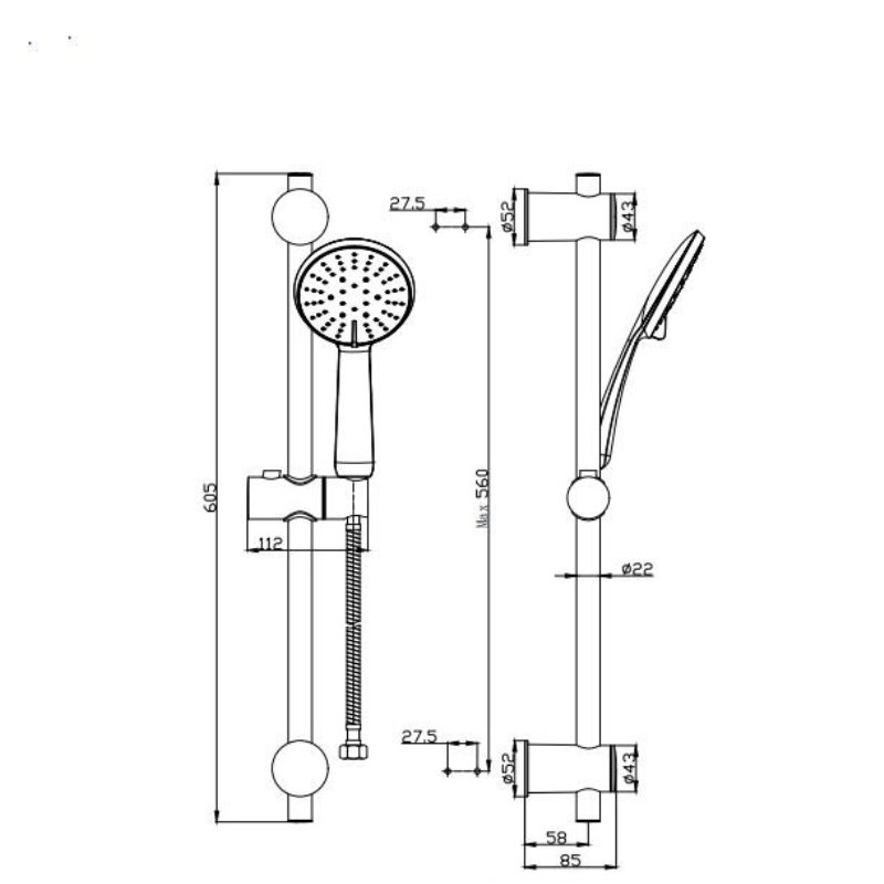 Душевой гарнитур Singapore black Esko SCS855BLACK имеет высоту 70 см . В комплект поставки входит душевая стойка, душевая лейка, настенное крепление, шланг для душа.