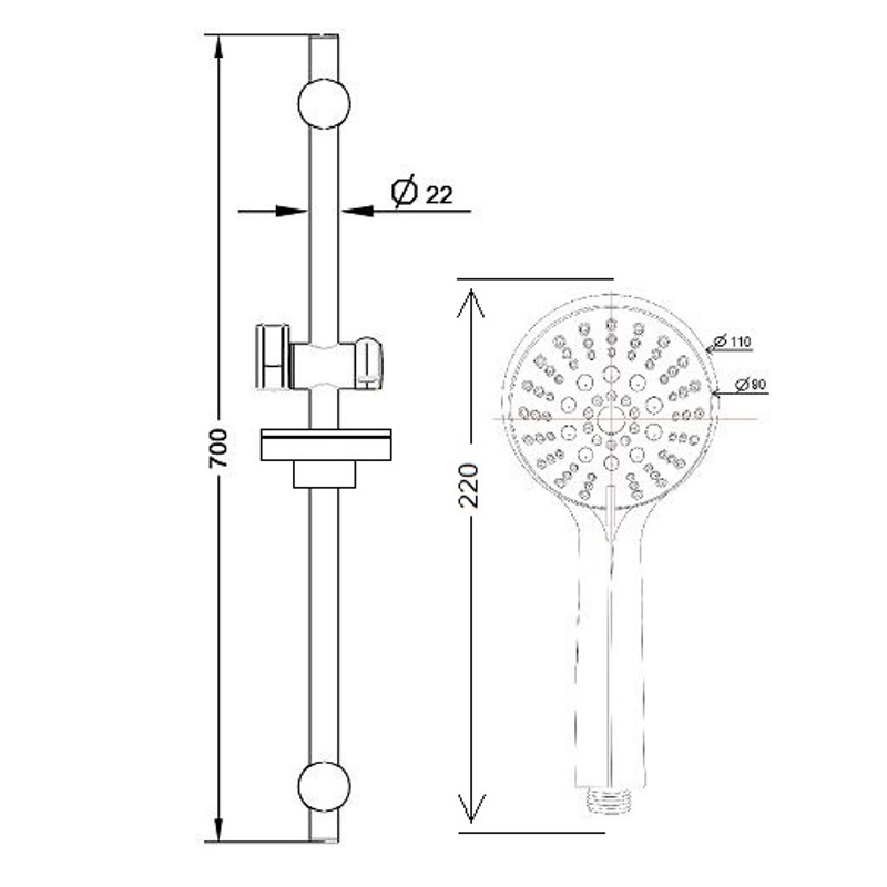 Душевой гарнитур Singapore Esko SCS855 имеет высоту 70 см . В комплект поставки входит душевая стойка, душевая лейка, настенное крепление, шланг для душа.