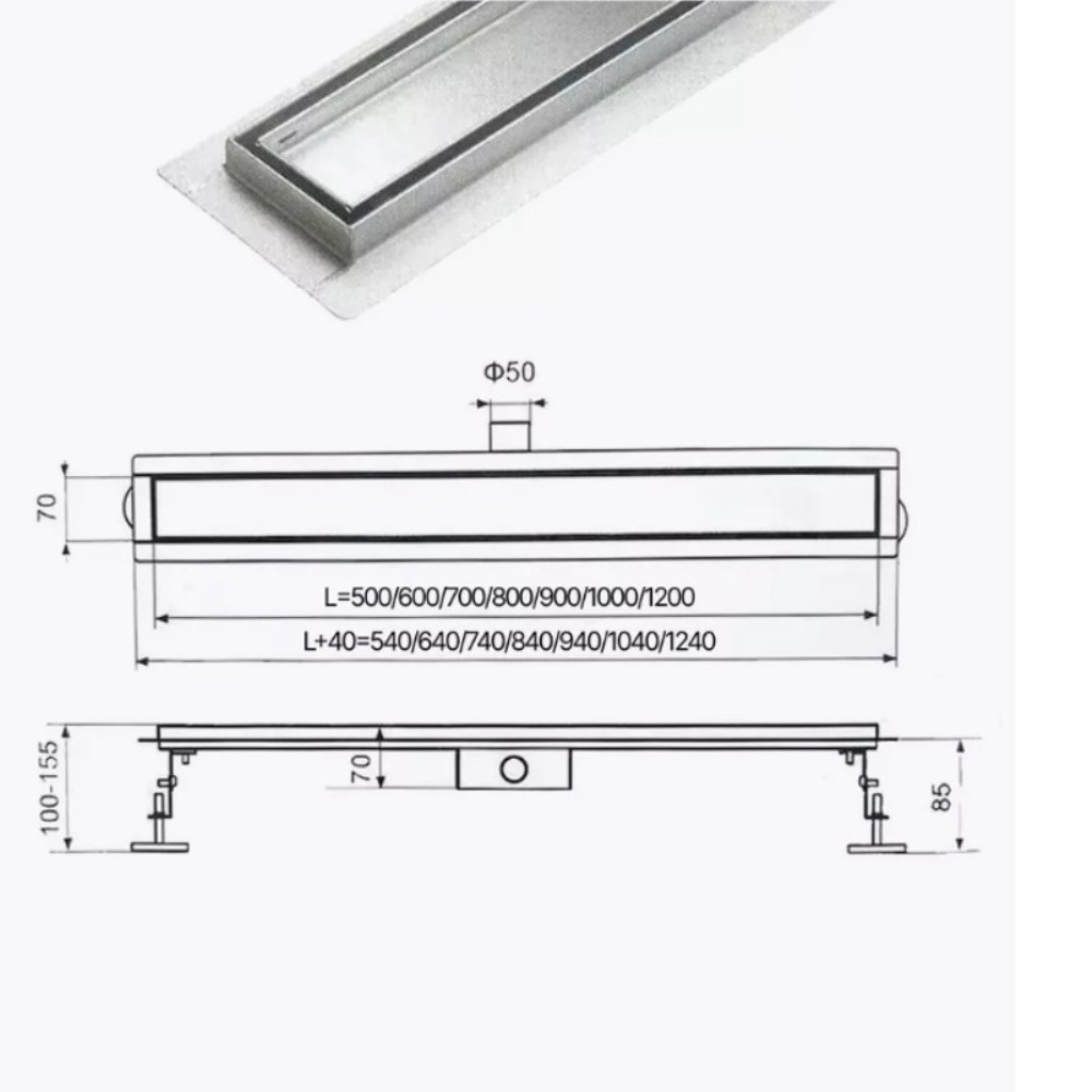 Душевой лоток Tim Bad под плитку предназначен для монтажа в душевых зонах. Решетка изготовлена из нержавеющей стали. В комплекте: решетка, гидроизоляция, горизонтальный выпуск 40 л/мин.