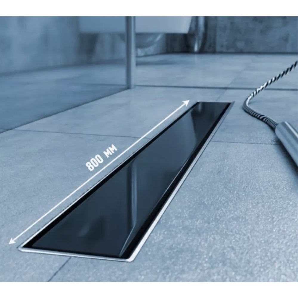 Душевой лоток Tim Evolux Glass 60 с двухсторонней решеткой Черный глянцевый / Хром матовый ZSt.1131.6002