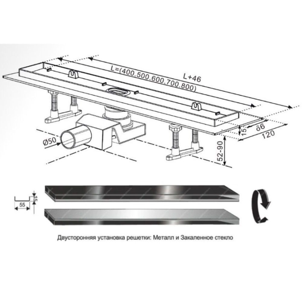 Душевой лоток Tim Evolux Glass с двухсторонней решеткой предназначен для монтажа в душевых зонах. Решетка изготовлена из нержавеющей стали. В комплекте: решетка, гидроизоляция, горизонтальный выпуск 50 л/мин.
