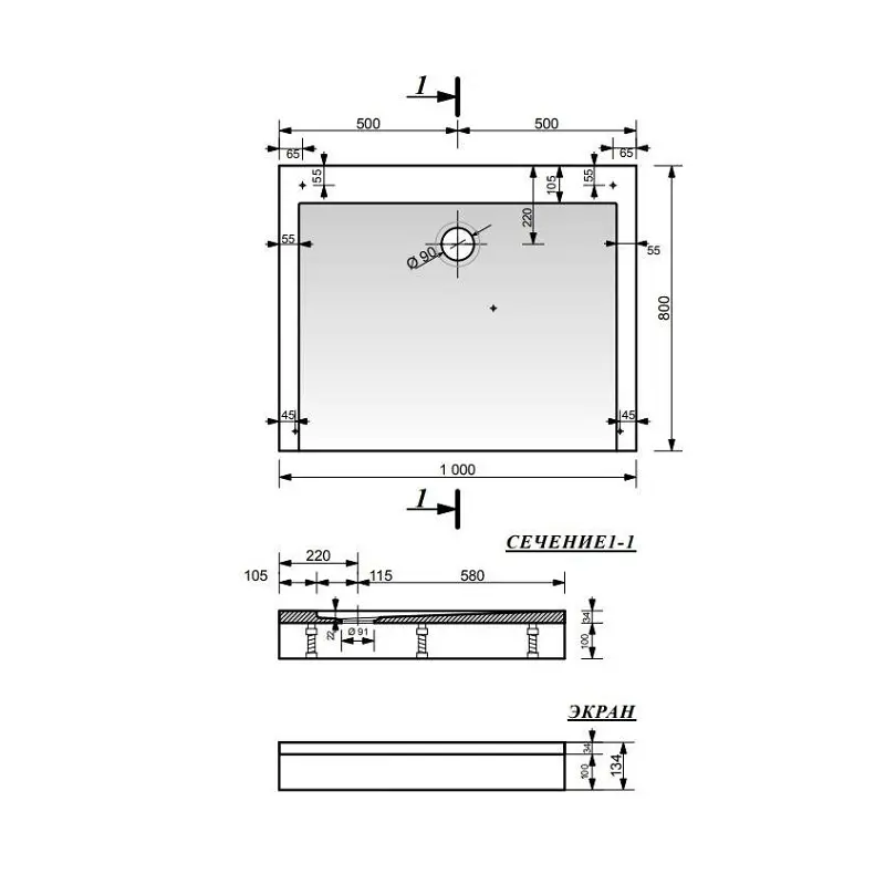 Душевой поддон Эстет Каппа имеет размер 100х80 см, обладает прямоугольной формой. Поддон предназначен для установки с панелью на ножки.