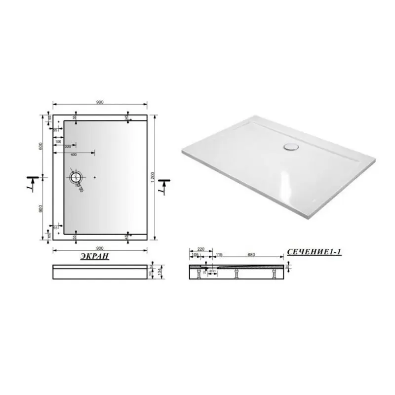 Душевой поддон Эстет Каппа имеет размер 120х90 см, обладает прямоугольной формой. Поддон предназначен для установки с панелью на ножки.