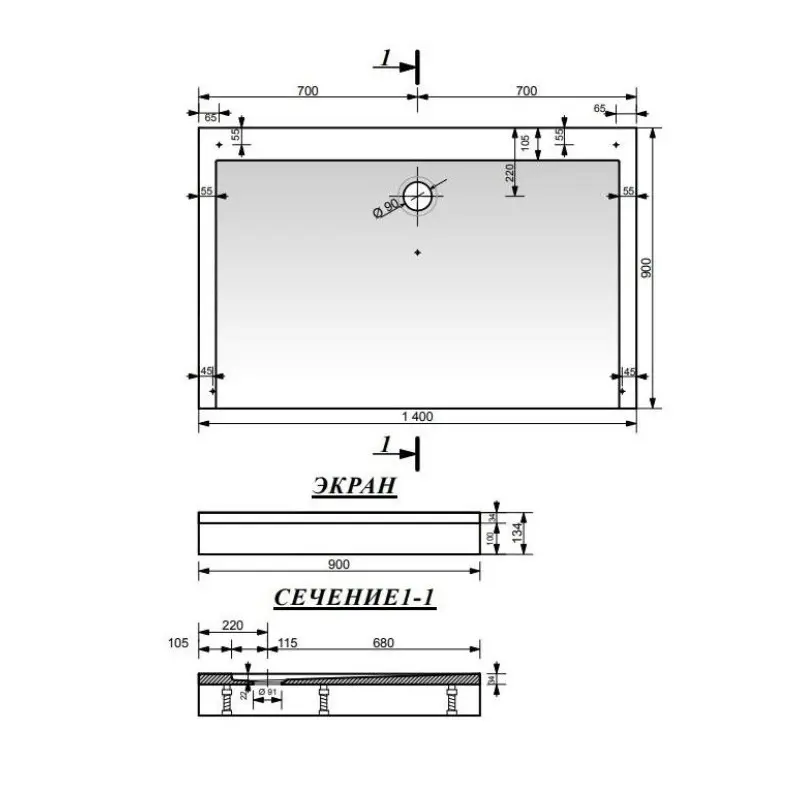Душевой поддон Эстет Каппа имеет размер 140х90 см, обладает прямоугольной формой. Поддон предназначен для установки с панелью на ножки.