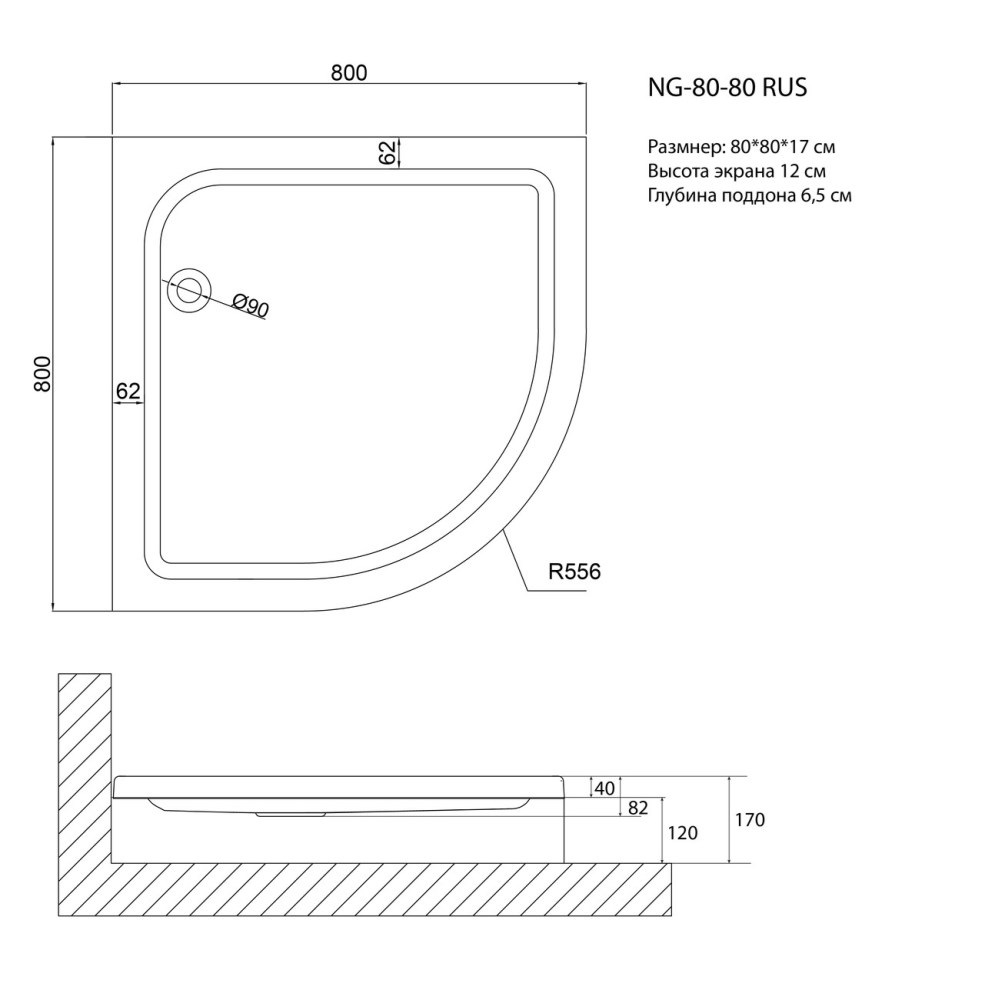 Душевой поддон Niagara Nova имеет размер 80х80 см. Форма — , низкий, цвет поддона четверть круга. Для установки на ножки.