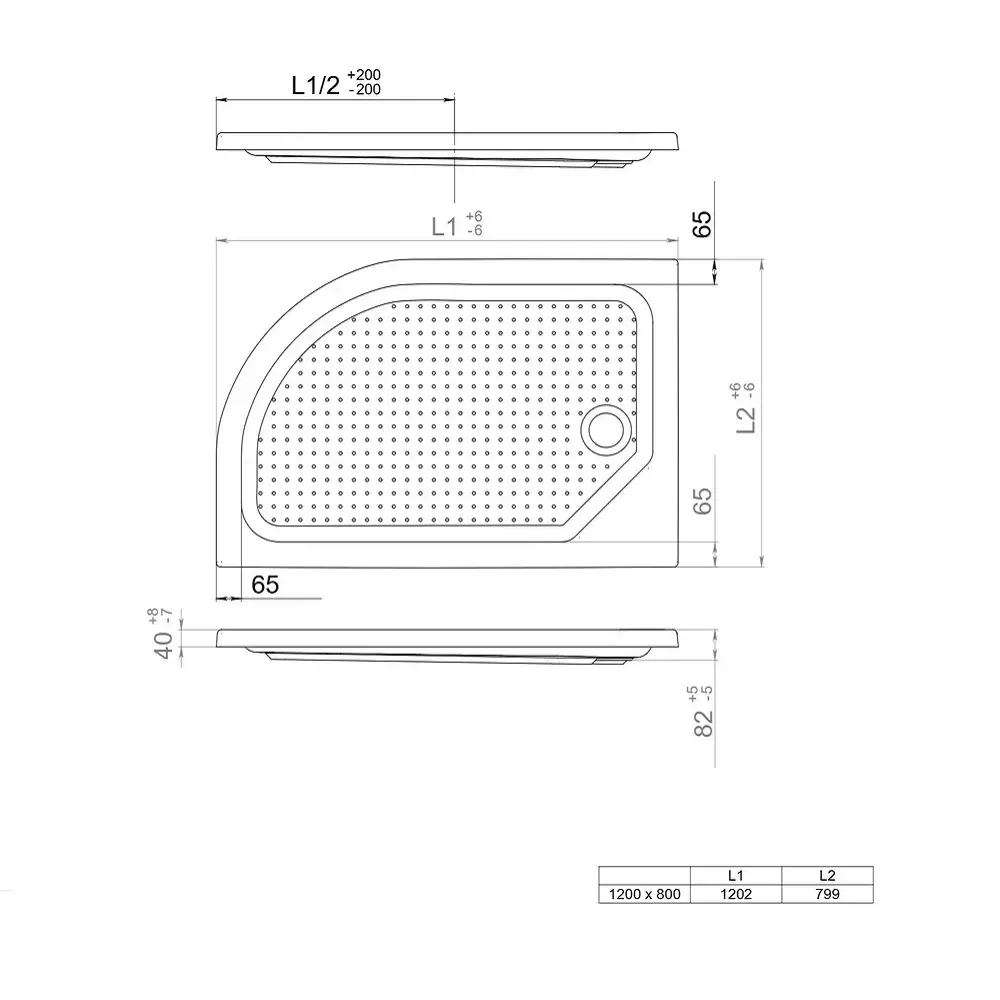 Душевой поддон Triton ПД16 имеет размер 120х80 см. Форма — четверть круга, низкий, цвет поддона белый. Для установки на пол и на подиум. Акриловый поддон на металлическом каркасе. Ножки регулируются по высоте. Антискользящее массажное покрытие.
