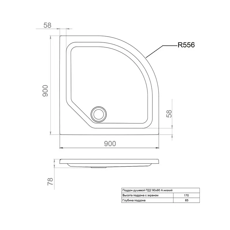 Душевой поддон Triton ПД2 ДК 90х90см, четверть круга, низкий