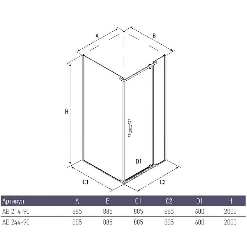 Душевой уголок Alex Baitler AB244 имеет размер 90х90 см. Квадратная форма, цвет профиля — хром, исполнение полотна двери — тонированное. Конструкция состоит из 3 секций: 2 неподвижных и распашной. Устанавливается в облицованный кафелем угол ванной комнаты на поддон.