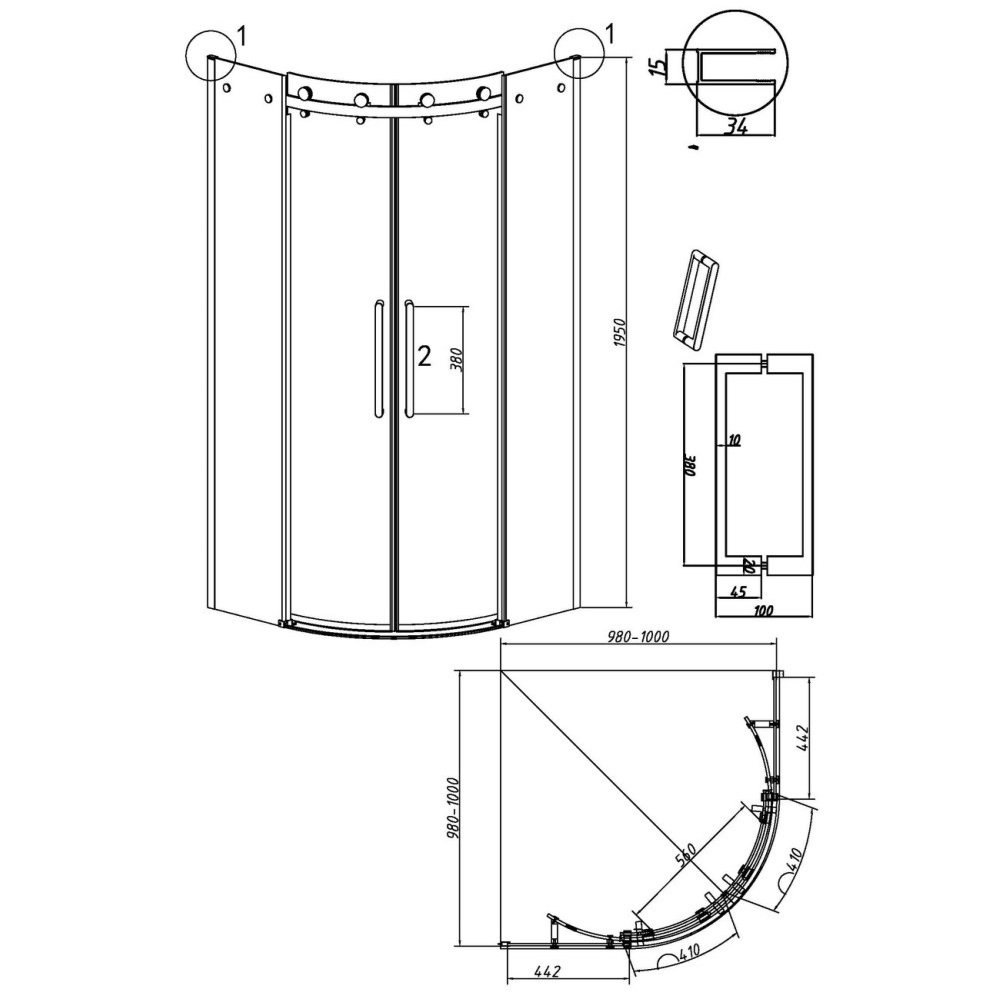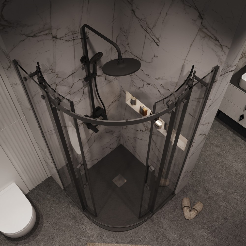 Душевой уголок Grossman Classic имеет размер 100х100х195 см. Четверть круга форма, цвет профиля — черный, исполнение полотна двери — прозрачное. Конструкция состоит из 4 секций. Раздвижная механизм открывания. Устанавливается в облицованный кафелем угол ванной комнаты на поддон.