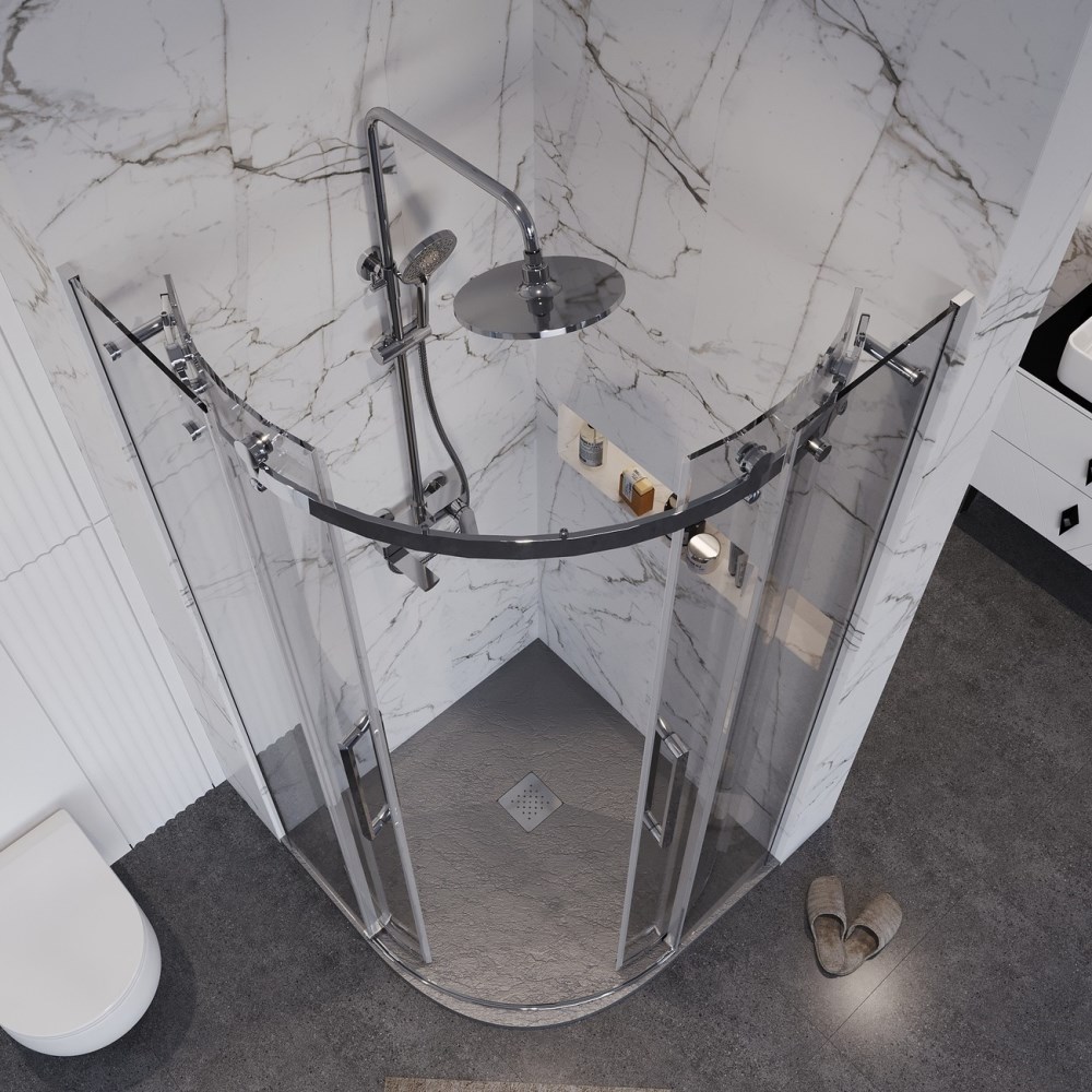 Душевой уголок Grossman Classic имеет размер 100х100х195 см. Четверть круга форма, цвет профиля — хром, исполнение полотна двери — прозрачное. Конструкция состоит из 4 секций. Раздвижная механизм открывания. Устанавливается в облицованный кафелем угол ванной комнаты на поддон.