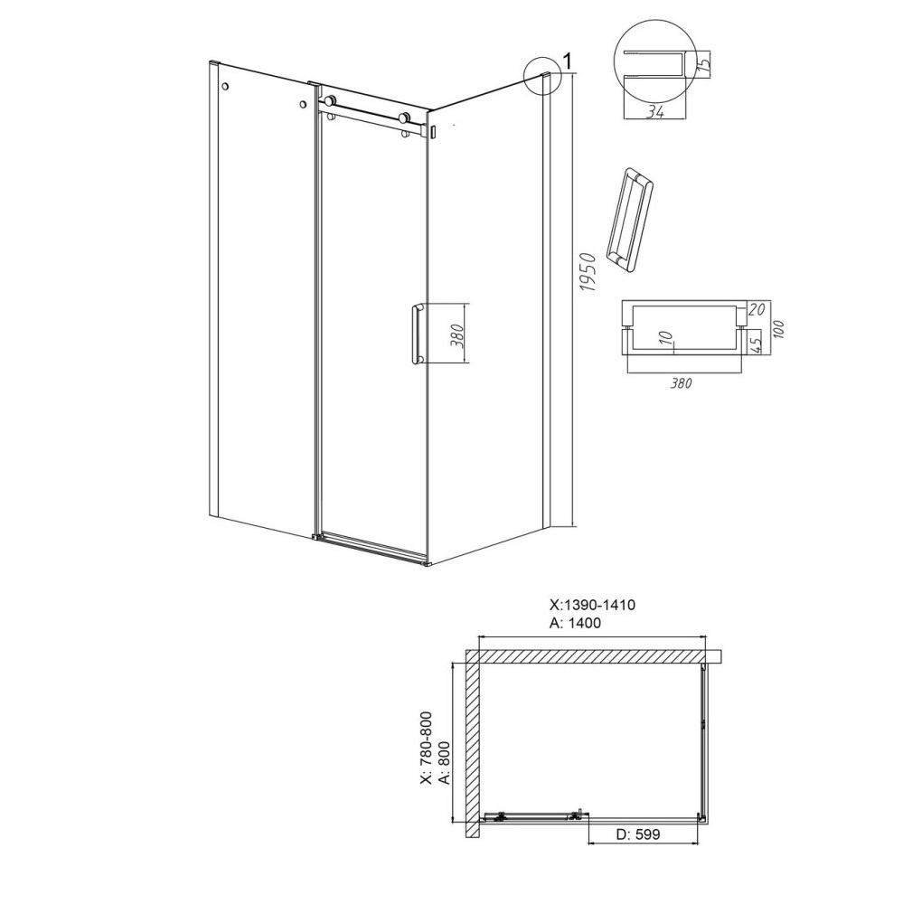 Душевой уголок Grossman Classic имеет размер 140х80х195 см. Прямоугольная форма, цвет профиля — черный, исполнение полотна двери — прозрачное. Конструкция состоит из 3 секций. Раздвижная механизм открывания. Устанавливается в облицованный кафелем угол ванной комнаты на поддон.