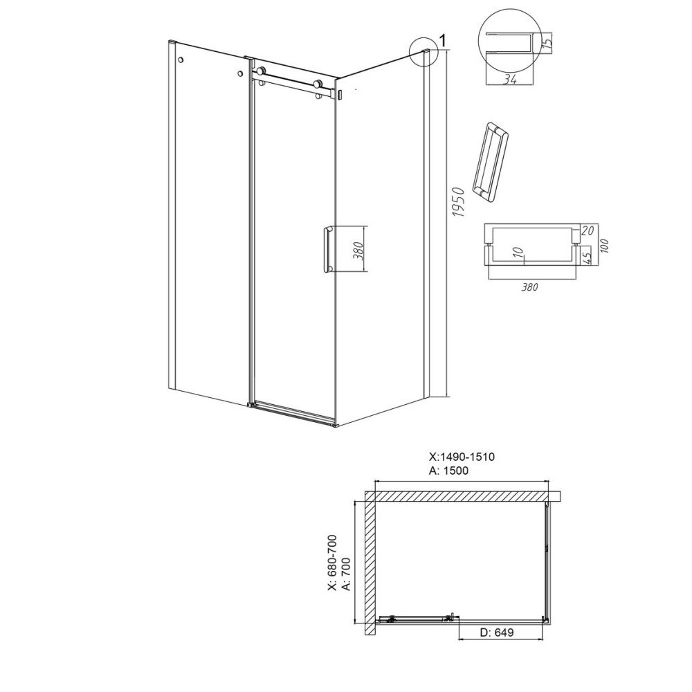 Душевой уголок Grossman Classic имеет размер 150х70х195 см. Прямоугольная форма, цвет профиля — хром, исполнение полотна двери — прозрачное. Конструкция состоит из 3 секций. Раздвижная механизм открывания. Устанавливается в облицованный кафелем угол ванной комнаты на поддон.