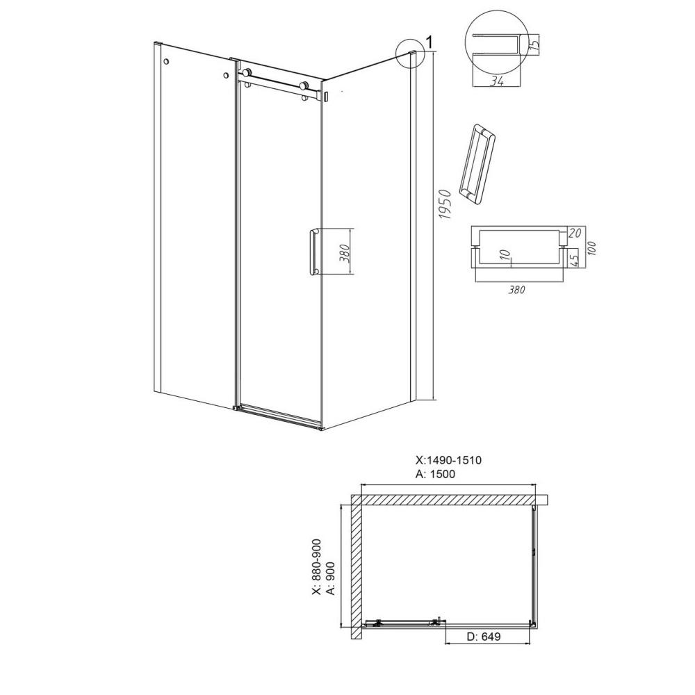 Душевой уголок Grossman Classic имеет размер 150х90х195 см. Прямоугольная форма, цвет профиля — черный, исполнение полотна двери — прозрачное. Конструкция состоит из 3 секций. Раздвижная механизм открывания. Устанавливается в облицованный кафелем угол ванной комнаты на поддон.