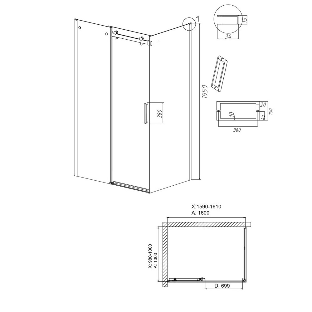 Душевой уголок Grossman Classic имеет размер 160х100х195 см. Прямоугольная форма, цвет профиля — черный, исполнение полотна двери — прозрачное. Конструкция состоит из 3 секций. Раздвижная механизм открывания. Устанавливается в облицованный кафелем угол ванной комнаты на поддон.