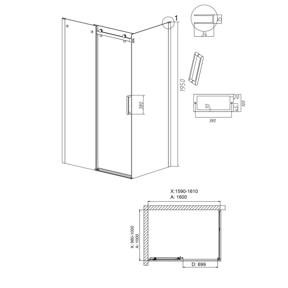 Душевой уголок Grossman Classic имеет размер 160х100х195 см. Прямоугольная форма, цвет профиля — графит, исполнение полотна двери — прозрачное. Конструкция состоит из 3 секций. Раздвижная механизм открывания. Устанавливается в облицованный кафелем угол ванной комнаты на поддон.
