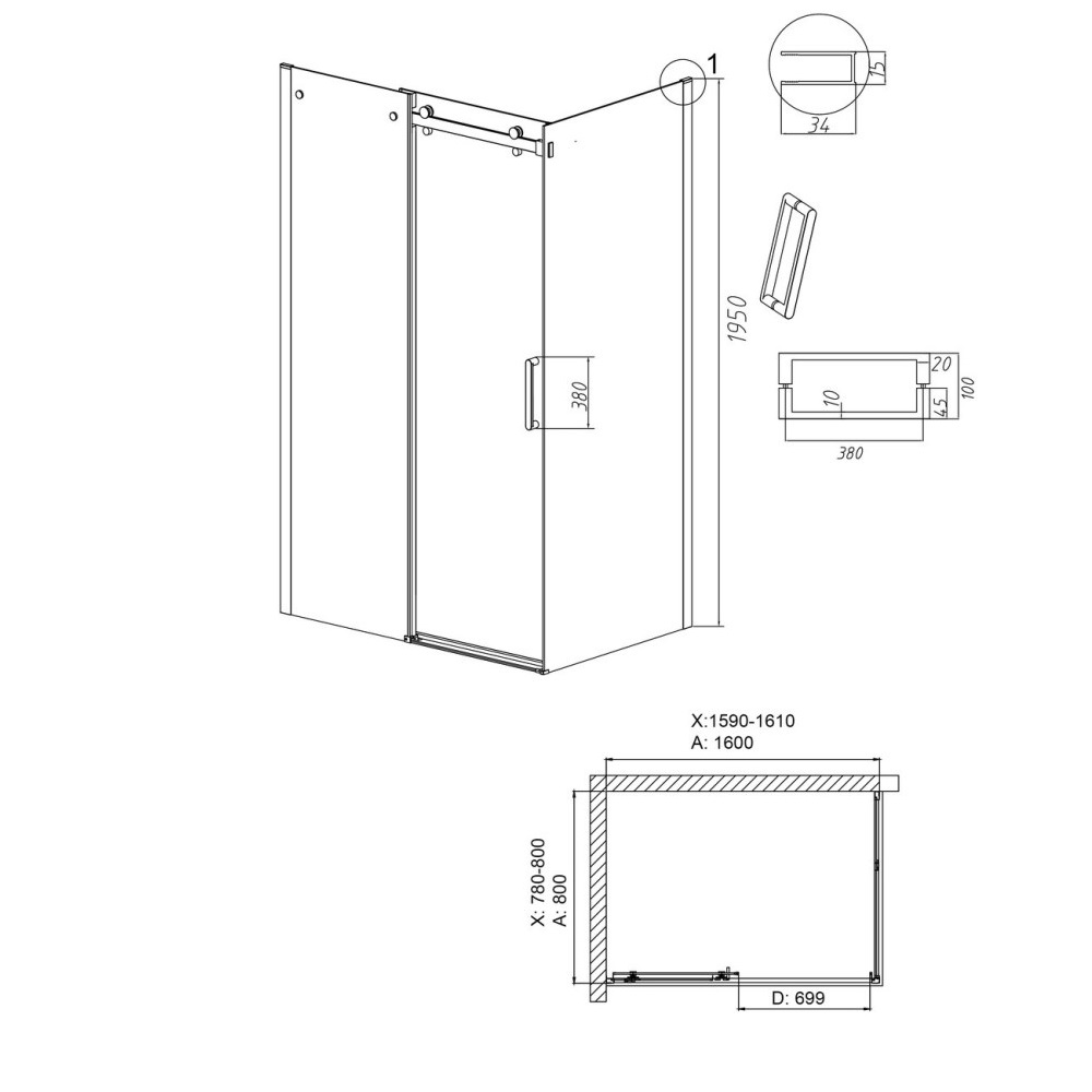 Душевой уголок Grossman Classic имеет размер 160х80х195 см. Прямоугольная форма, цвет профиля — графит, исполнение полотна двери — прозрачное. Конструкция состоит из 3 секций. Раздвижная механизм открывания. Устанавливается в облицованный кафелем угол ванной комнаты на поддон.