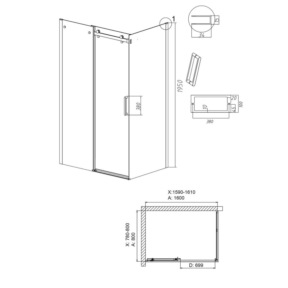 Душевой уголок Grossman Classic имеет размер 160х80х195 см. Прямоугольная форма, цвет профиля — золото, исполнение полотна двери — прозрачное. Конструкция состоит из 3 секций. Раздвижная механизм открывания. Устанавливается в облицованный кафелем угол ванной комнаты на поддон.