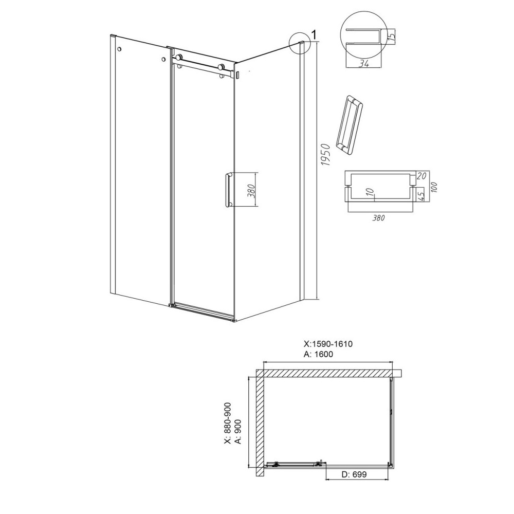 Душевой уголок Grossman Classic имеет размер 160х90х195 см. Прямоугольная форма, цвет профиля — черный, исполнение полотна двери — прозрачное. Конструкция состоит из 3 секций. Раздвижная механизм открывания. Устанавливается в облицованный кафелем угол ванной комнаты на поддон.