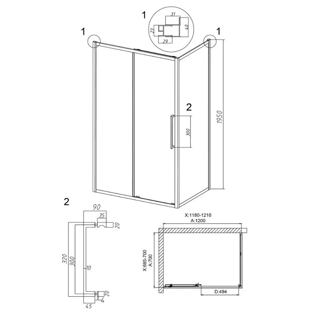 Душевой уголок Grossman Cosmo имеет размер 120х70х195 см. Прямоугольная форма, цвет профиля — хром, исполнение полотна двери — прозрачное. Конструкция состоит из 3 секций. Раздвижная механизм открывания. Устанавливается в облицованный кафелем угол ванной комнаты на поддон.