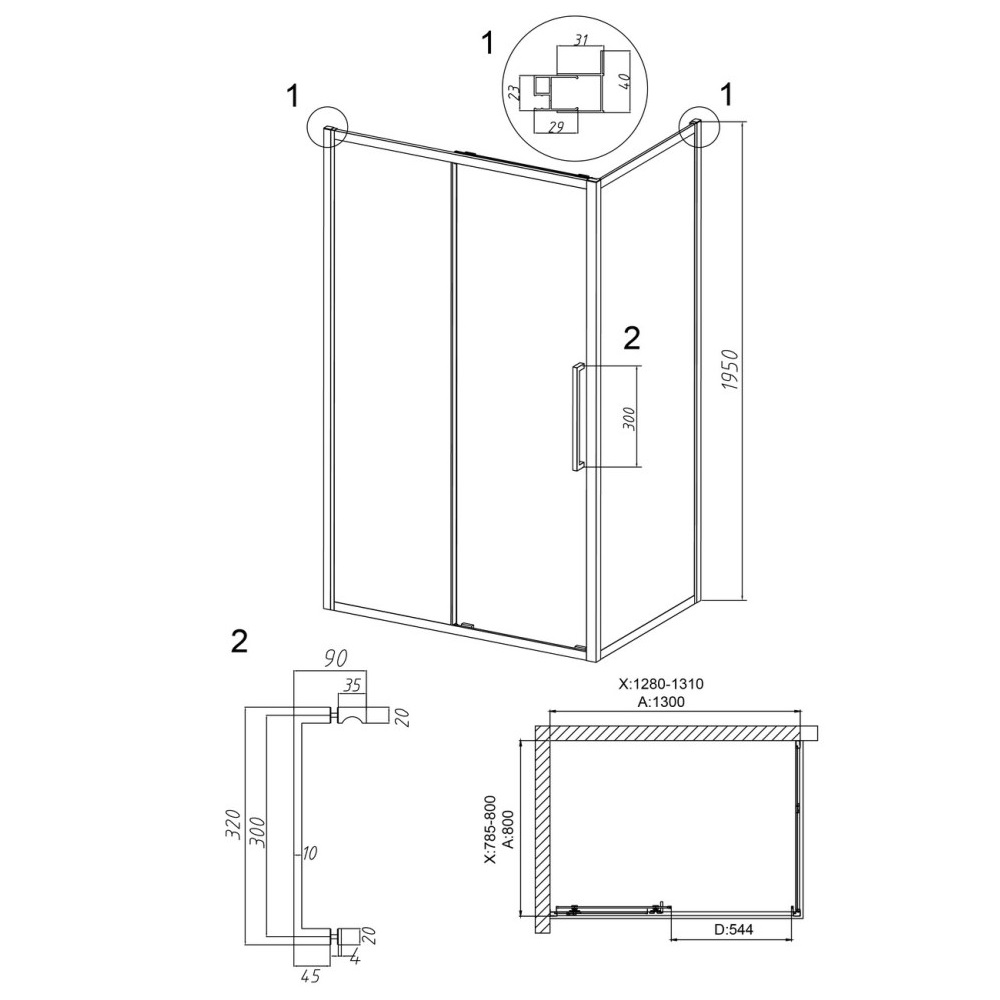 Душевой уголок Grossman Cosmo имеет размер 130х80х195 см. Прямоугольная форма, цвет профиля — хром, исполнение полотна двери — прозрачное. Конструкция состоит из 3 секций. Раздвижной механизм открывания. Устанавливается в облицованный кафелем угол ванной комнаты на поддон.