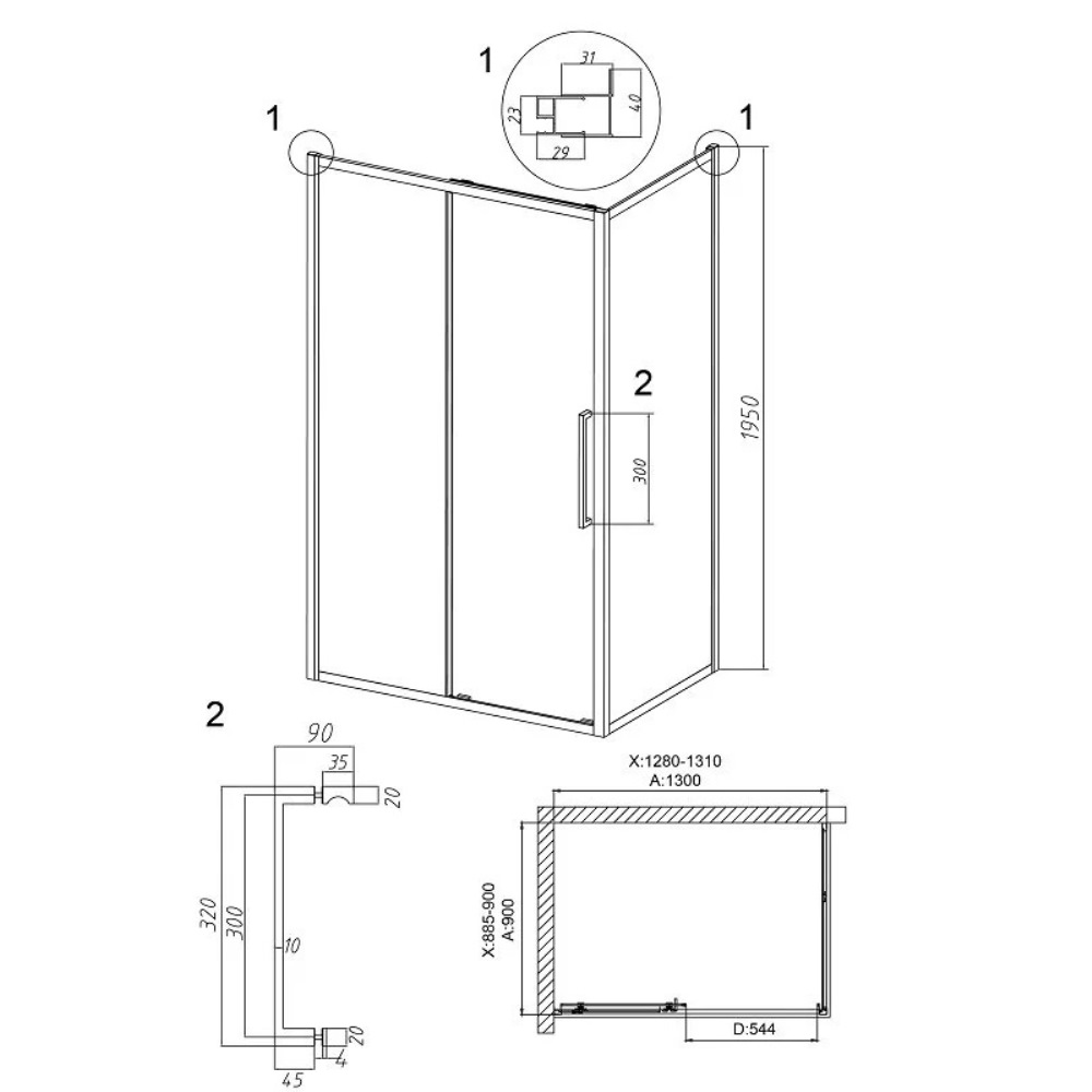 Душевой уголок Grossman Cosmo имеет размер 130х90х195 см. Прямоугольная форма, цвет профиля — золото, исполнение полотна двери — прозрачное. Конструкция состоит из 3 секций. Раздвижная механизм открывания. Устанавливается в облицованный кафелем угол ванной комнаты на поддон.