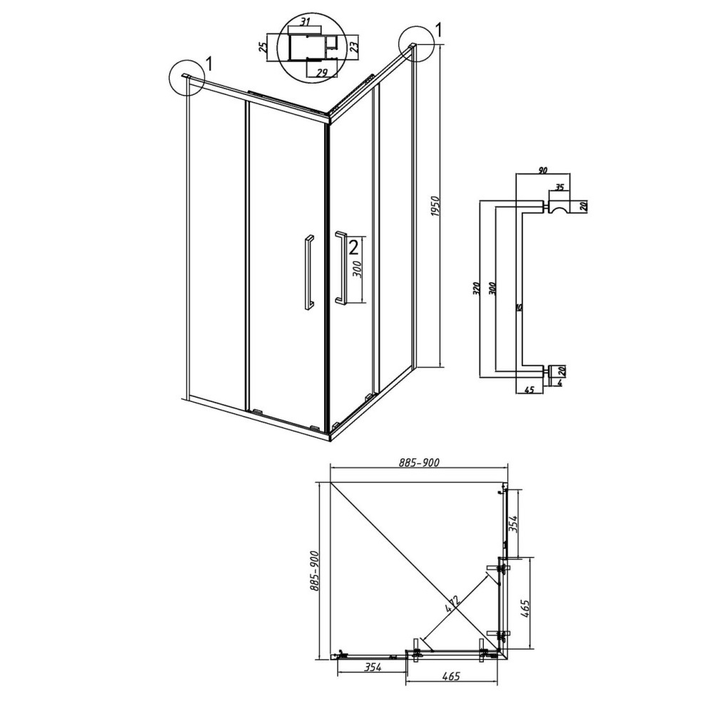 | Габариты | 90 × 90 × 195 см |