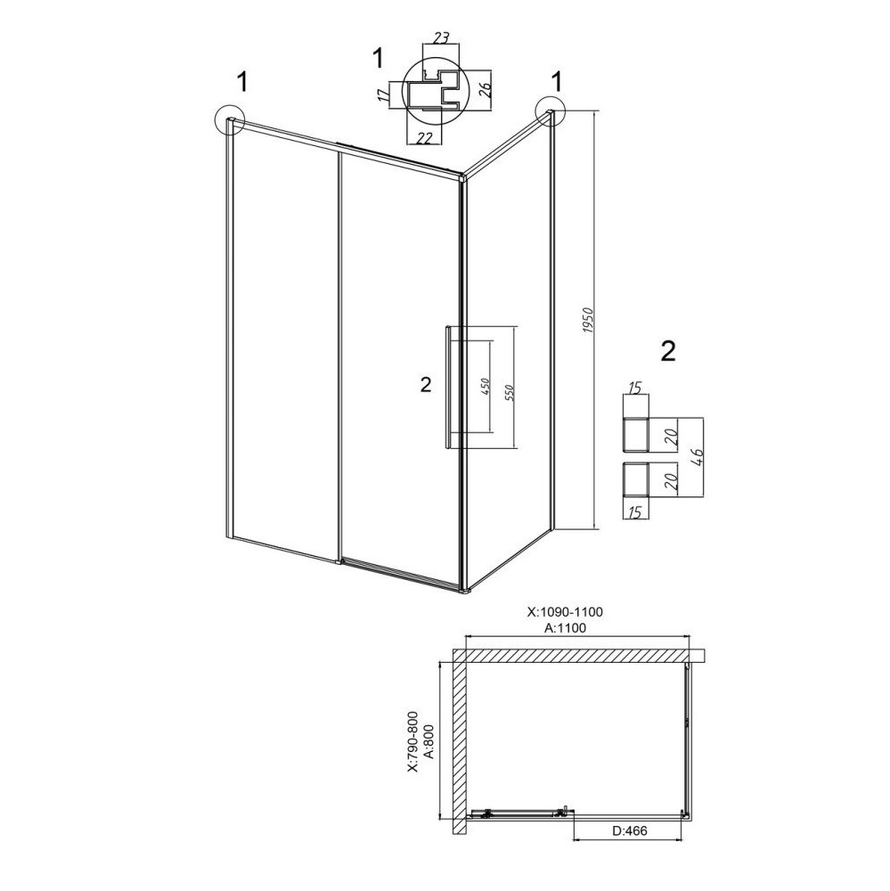 Душевой уголок Grossman Galaxy имеет размер 110х80х195 см. Прямоугольная форма, цвет профиля — хром, исполнение полотна двери — прозрачное. Конструкция состоит из 3 секций. Раздвижной механизм открывания. Устанавливается в облицованный кафелем угол ванной комнаты на поддон.