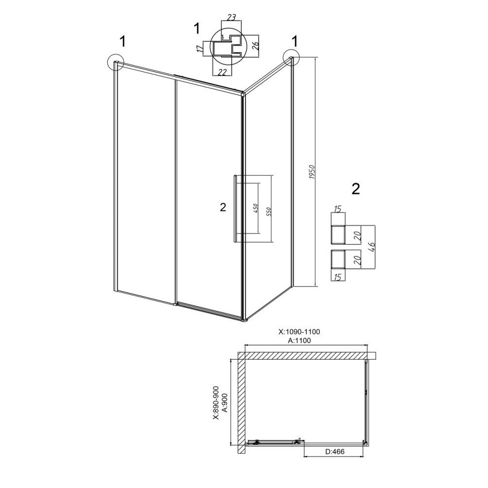Душевой уголок Grossman Galaxy имеет размер 110х90х195 см. Прямоугольная форма, цвет профиля — черный, исполнение полотна двери — прозрачное. Конструкция состоит из 3 секций. Раздвижной механизм открывания. Устанавливается в облицованный кафелем угол ванной комнаты на поддон.