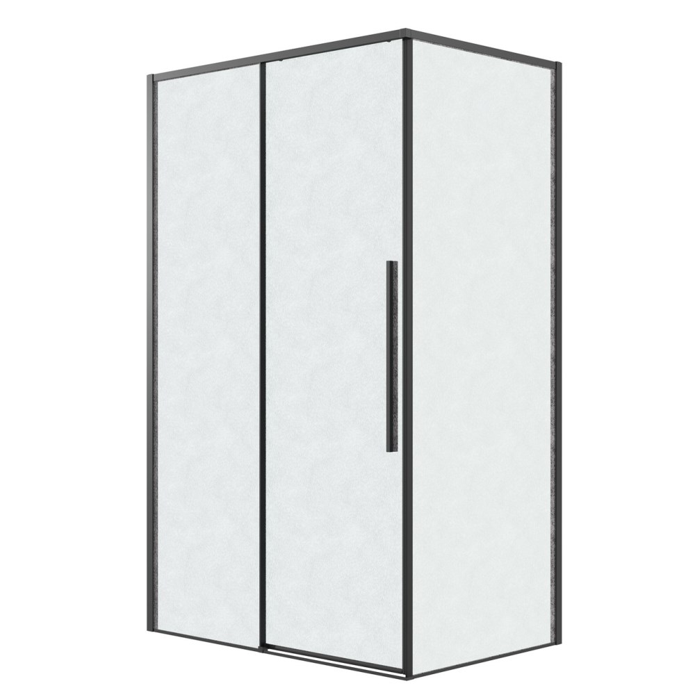 Душевой уголок Grossman Galaxy имеет размер 120х100х195 см. Прямоугольная форма, цвет профиля — черный, исполнение полотна двери — рифленое. Конструкция состоит из 3 секций. Раздвижной механизм открывания. Устанавливается в облицованный кафелем угол ванной комнаты на поддон.