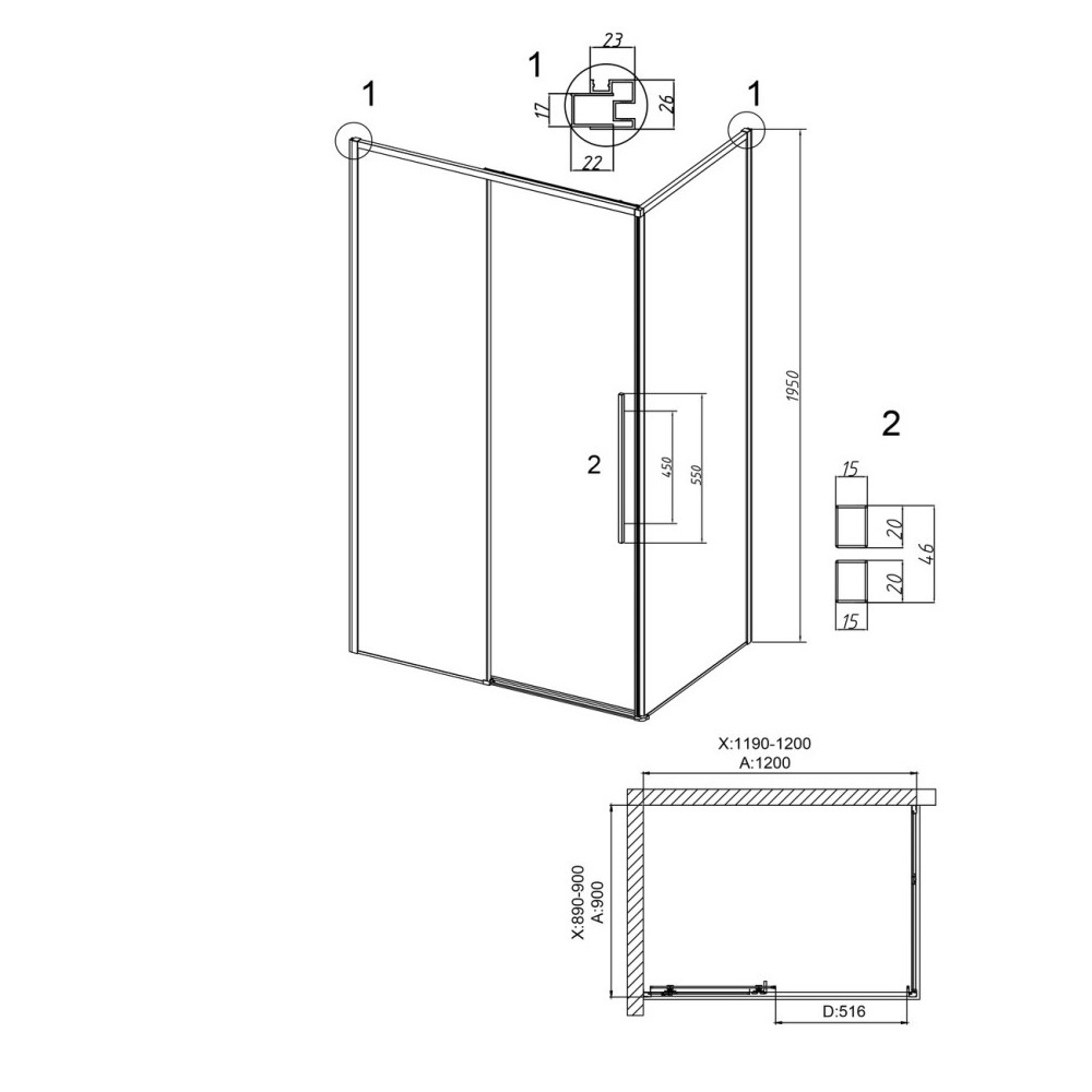 Душевой уголок Grossman Galaxy имеет размер 120х90х195 см. Прямоугольная форма, цвет профиля — графит, исполнение полотна двери — прозрачное. Конструкция состоит из 3 секций. Раздвижной механизм открывания. Устанавливается в облицованный кафелем угол ванной комнаты на поддон.