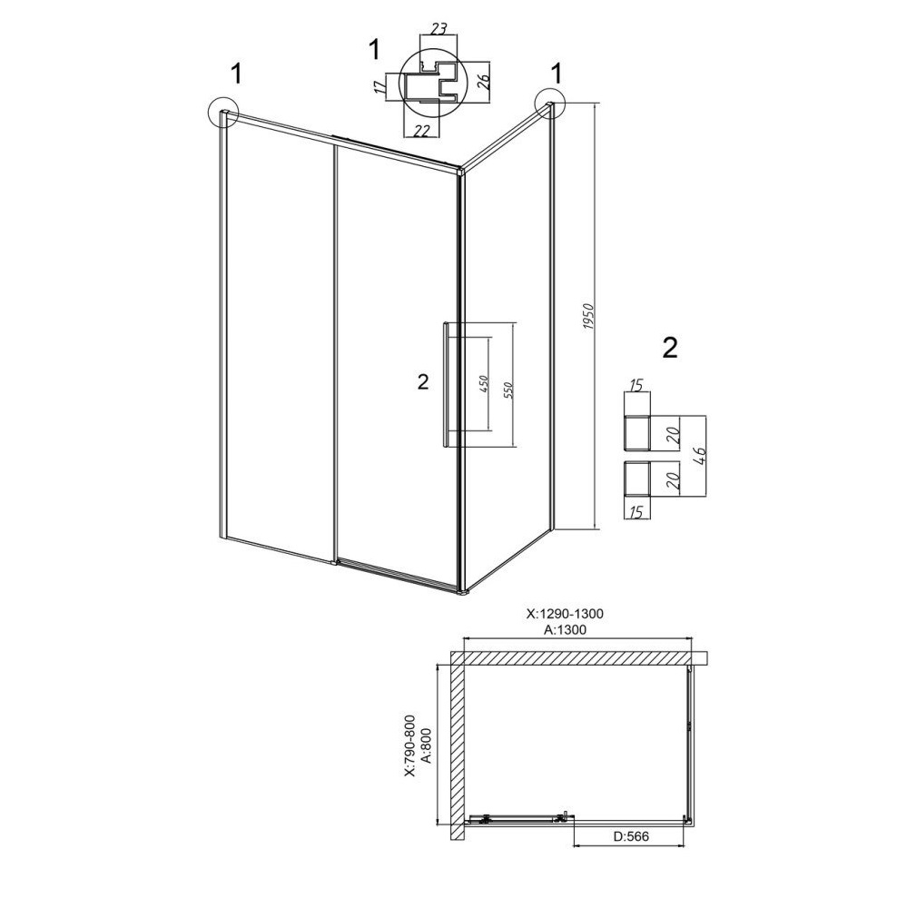 Душевой уголок Grossman Galaxy имеет размер 130х80х195 см. Прямоугольная форма, цвет профиля — хром, исполнение полотна двери — прозрачное. Конструкция состоит из 3 секций. Раздвижной механизм открывания. Устанавливается в облицованный кафелем угол ванной комнаты на поддон.